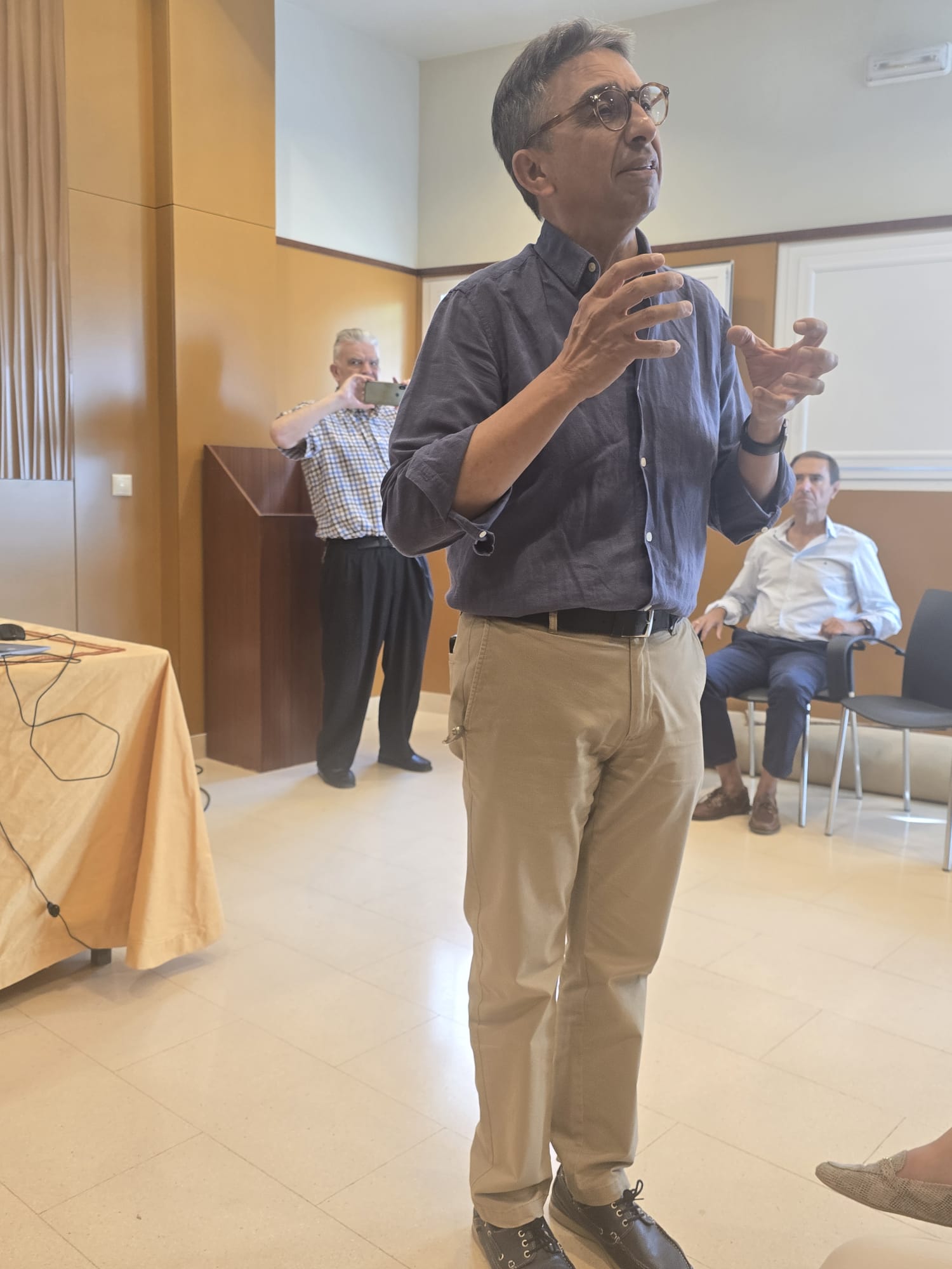 Antonio Arrabal presentó al ponente y manifestó que la tecnología IA constituye un cambio cualitativo, es una revolución mayor que la industrial. No sustituye a la persona, pero la ayuda en sus tareas. Hay que lograr que contribuya al progreso, respetando la dignidad de la persona.