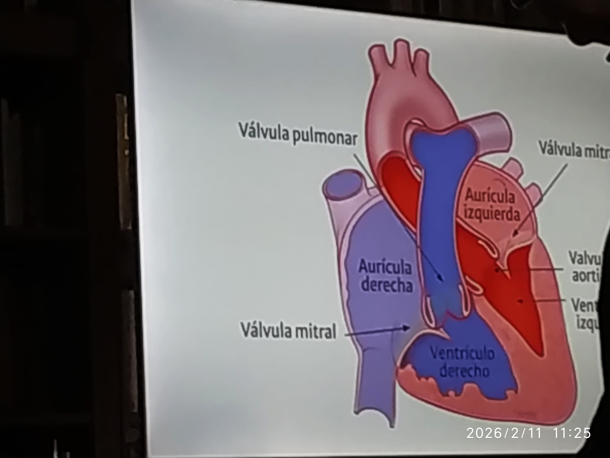 Detalló el recorrido de la sangre por nuestro organismo, impulsada por el corazón. Las venas cava superior e inferior hacen llegar al corazón la sangre venosa, azulada. La sangre arterial, roja, sale por la arteria aorta. Destacó la alta presión del ventrículo izquierdo, para que llegue la sangre a todo el cuerpo, al hablar de las dos aurículas y los dos ventrículos y de las válvulas tricúspide, mitral, pulmonar y aórtica. El corazón necesita que sus movimientos sean sincrónicos, sobre todo el ventrículo izquierdo, que necesita mucha fuerza. Explicó que el nodo sinusal decide a qué «ritmo sinusal» va el corazón, detallando su sistema eléctrico.