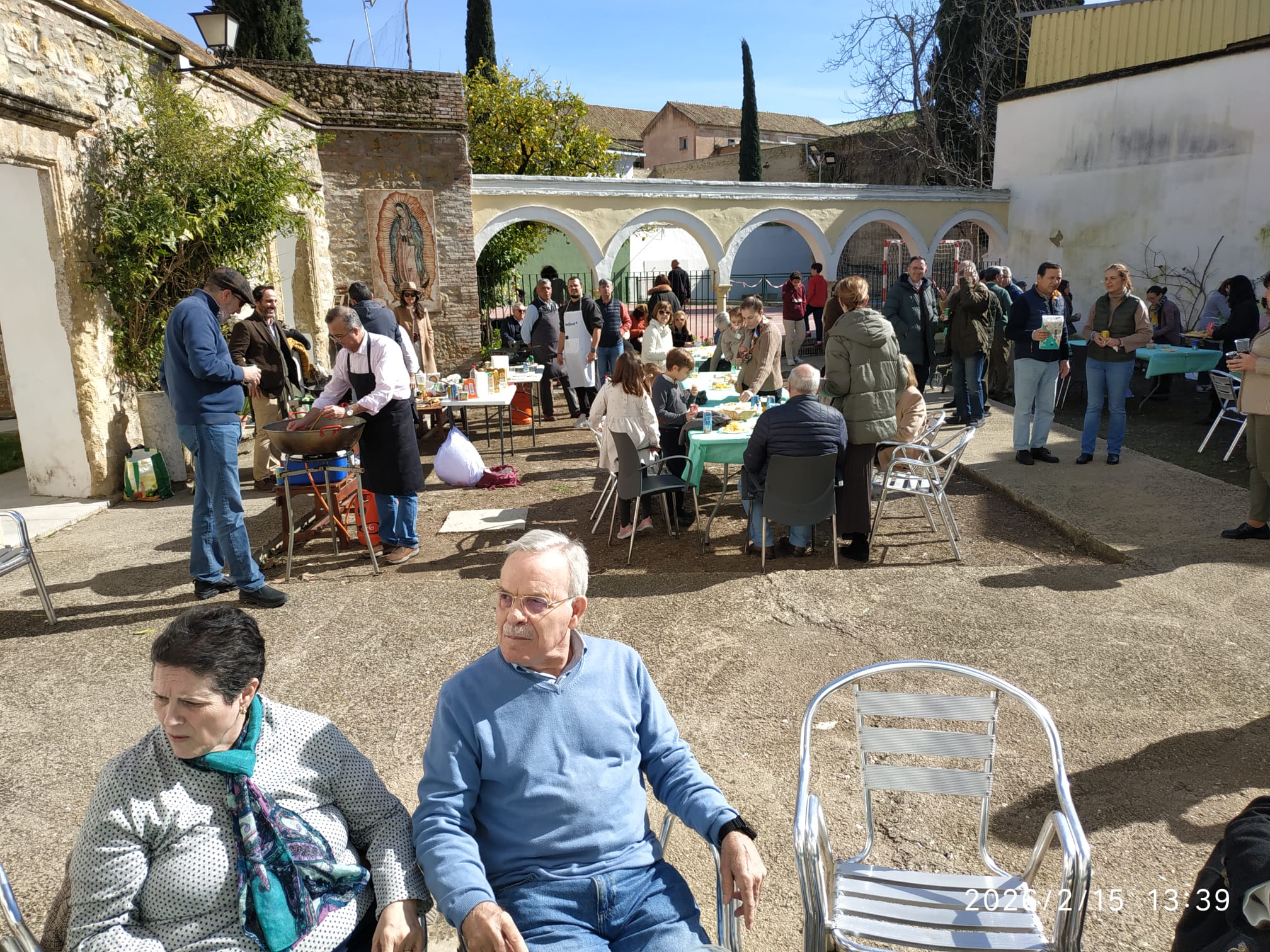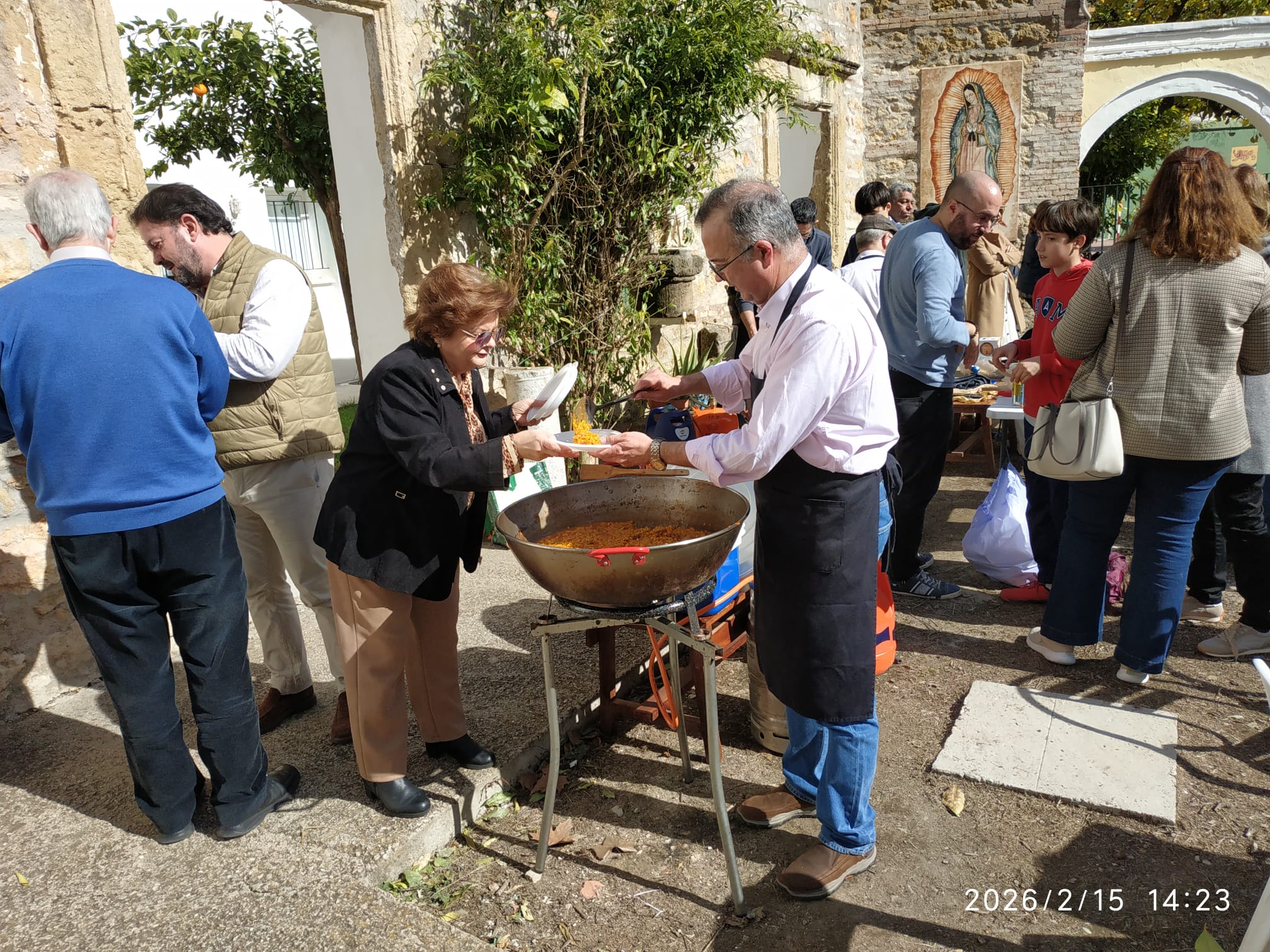 El domingo 15-feb-2026 hemos tenido Misa de 12:30 en Alcorce, con participación infantil. A las 13:30 aperitivo y perol en el patio grande, con premios al final para los 8 peroles, 8 grupos de concursantes, otorgados por el presidente de la Asociación Familiar Alcorce, José Ignacio Santiago, quien, junto a los diplomas para los ganadores, regaló catavinos a todos los concursantes. Él y Ángel Espejo dieron unas indicaciones para la buena marcha del evento. José Ignacio invitó a las presentes a asistir a los cafés de las madres de los niños del Club Juvenil.