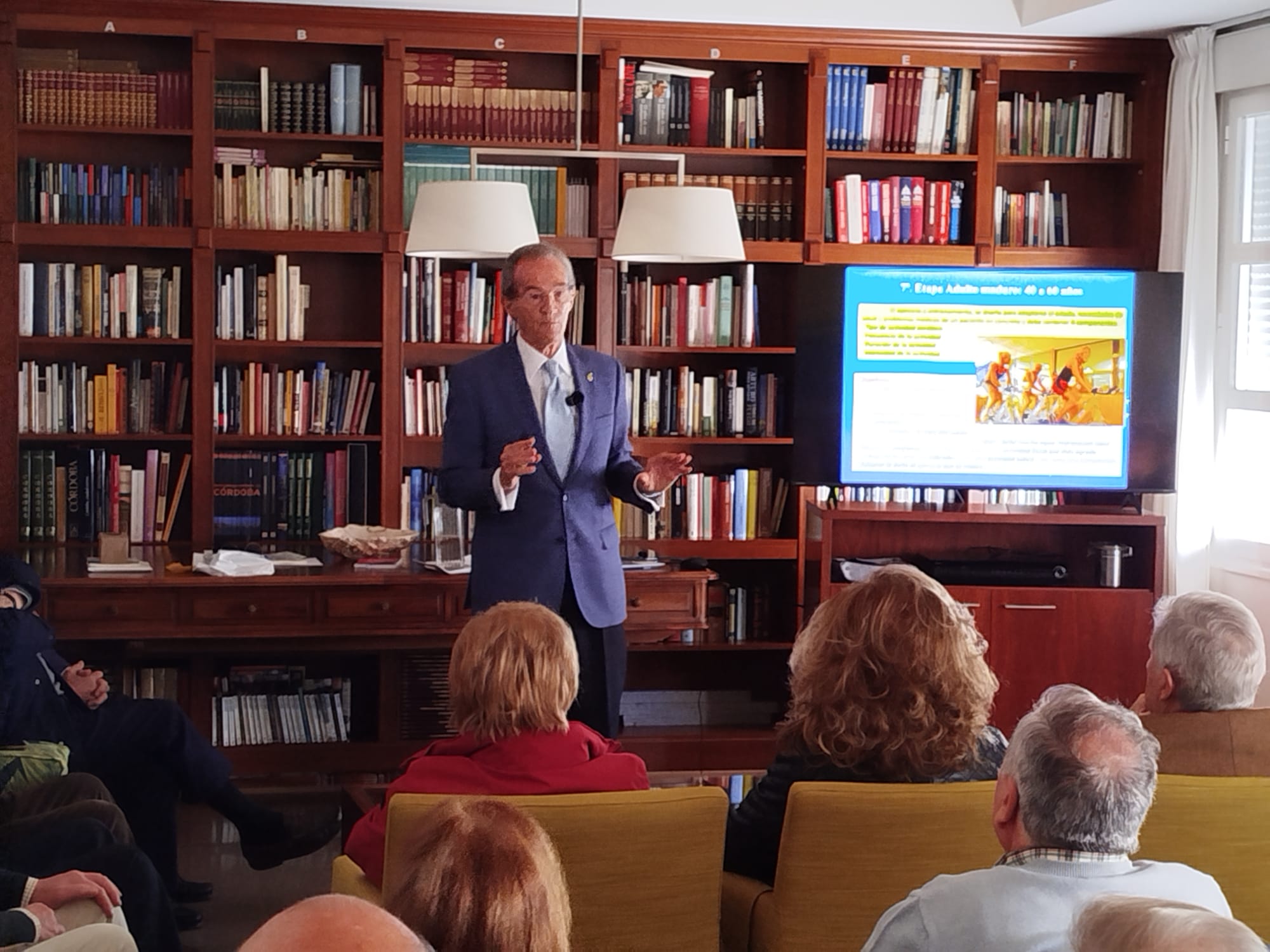 Comenzó diciendo que él se había planteado hablarnos de lo que piensa del corazón y de cómo se debe de cuidar para cualquier edad y cuando se es mayor, para, después de la exposición, atender a las preguntas.