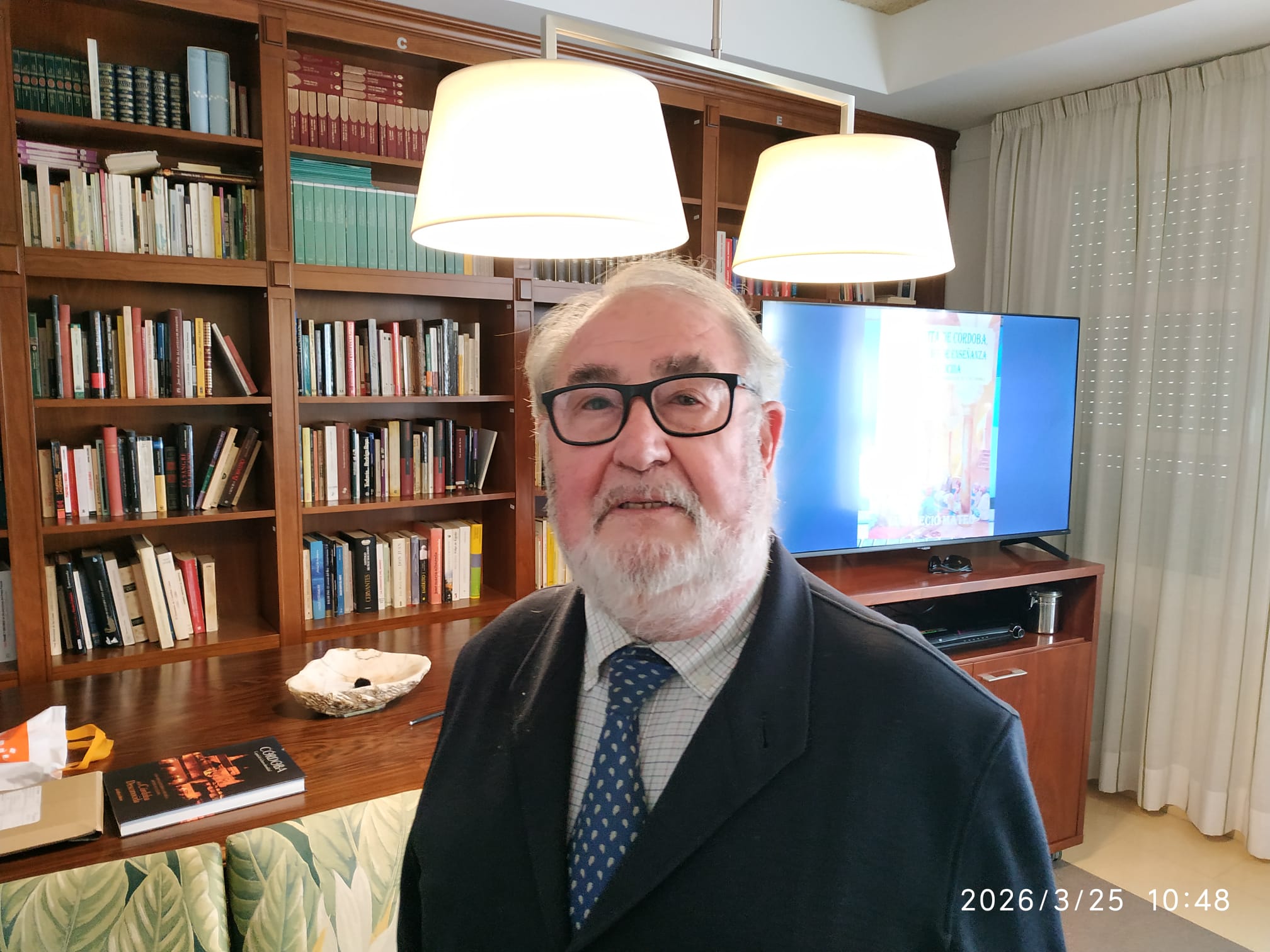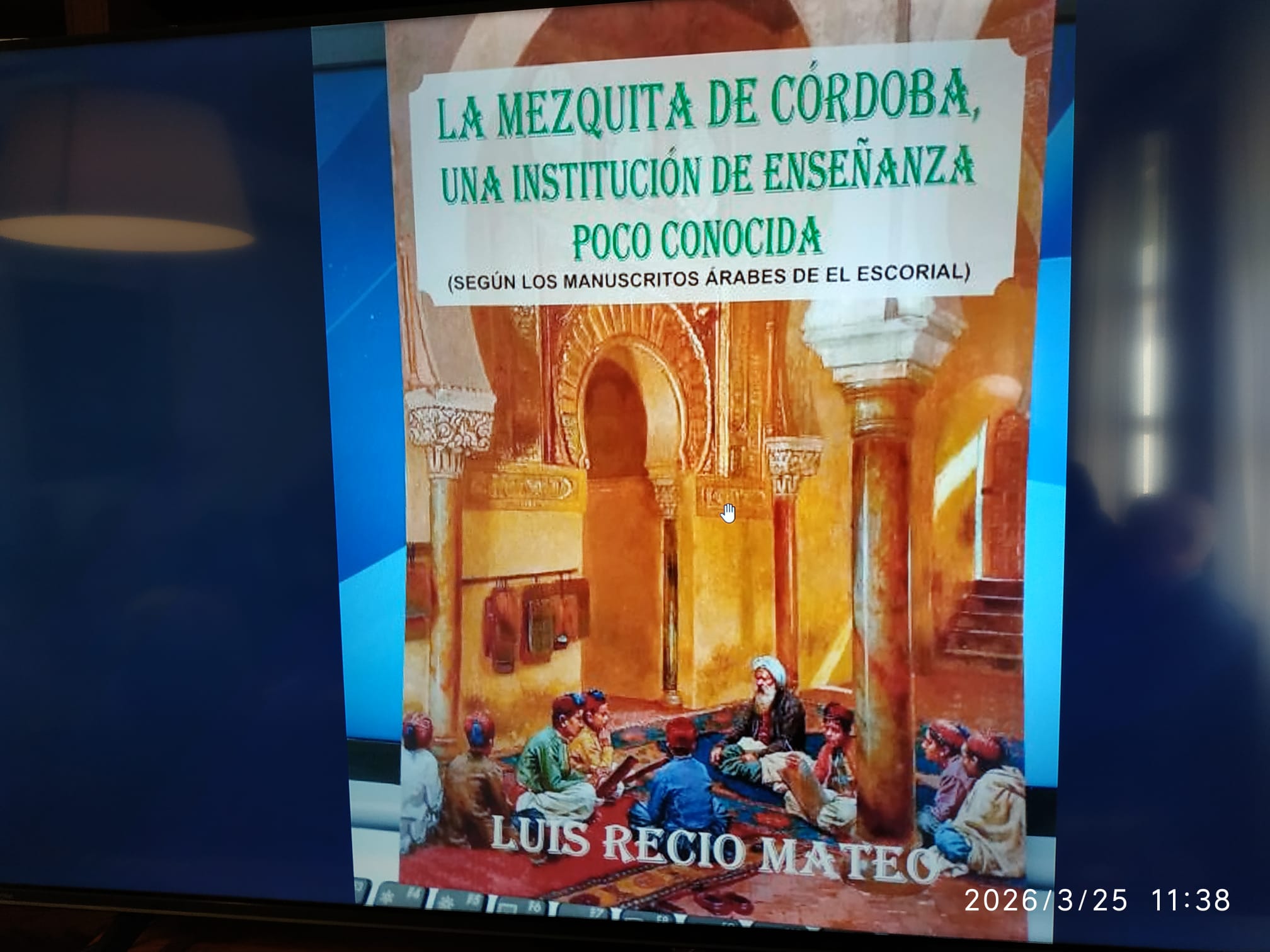 Recio Mateo comenzó enseñándonos un ejemplar del libro que va a publicar en breve, titulado «La Mezquita de Córdoba, una institución de enseñanza poco conocida», también su conocido libro «A la Córdoba Desconocida».