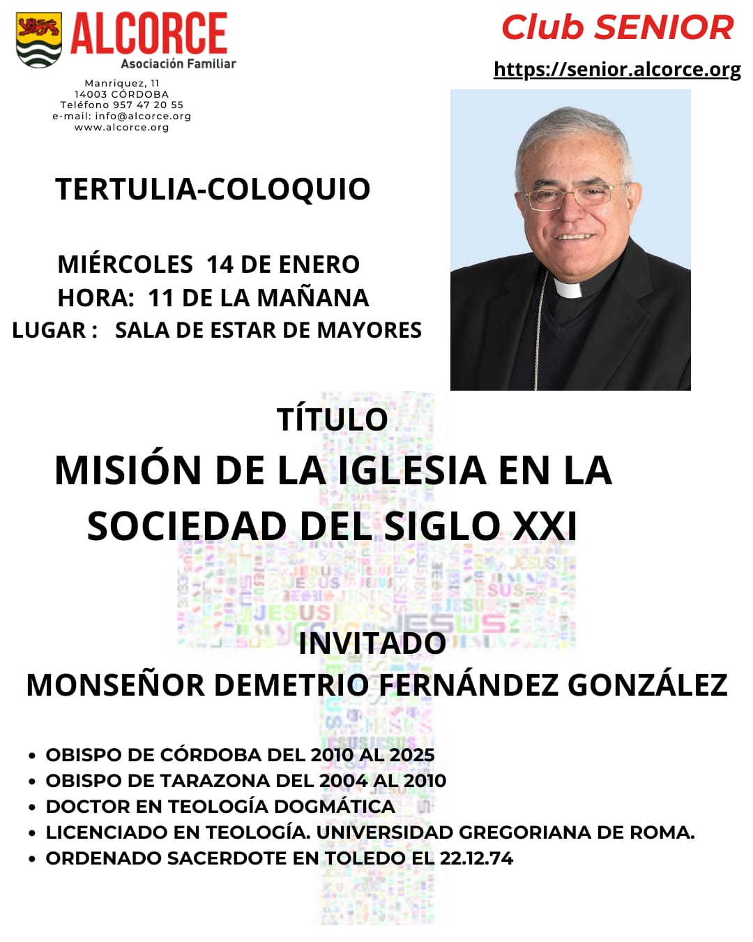 | 14/01/2026 | Charla-coloquio de don Demetrio Fernández González: misión de la Iglesia en la sociedad del siglo XXI | |