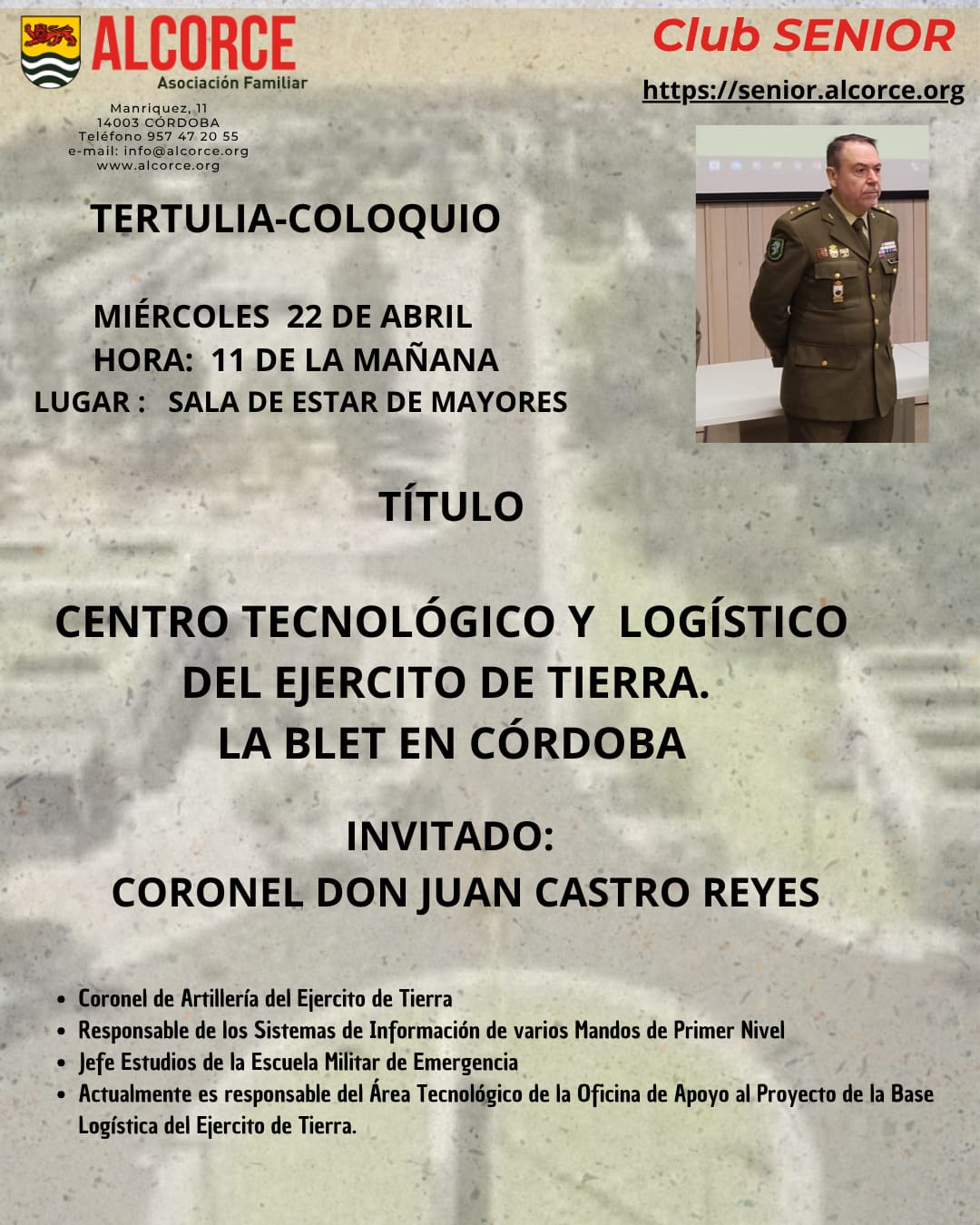 Hoy, miércoles 11-mar-2026, hemos tenido una nueva charla-coloquio en Alcorce, esta vez con el profesor doctor Manuel Guillén del Castillo, sobre: Actividades físicas recomendadas y desaconsejadas para séniors. El acto tuvo lugar en la sala de estar de mayores de Alcorce. Antonio Arrabal presentó al ponente, destacando algunos aspectos de su currículum: Doctor en Medicina y Cirugía. Licenciado en educación física por el INEF de Madrid. Funcionario de carrera grupo A. Director del Departamento de Educación Física y Corporal de la UCO. Director y fundador del Centro de Estudios Olímpicos de la UCO. Director del Servicio de Educación Física de la UCO. Director del Aula de la Salud y Director del Aula Olímpica del Real Círculo de la Amistad de Córdoba. Académico de la Real Academia de Ciencias, Bellas Letras y Nobles Artes de Córdoba. Presidente de la Academia de Ciencias de la Actividad Física y del Deporte en España. Ha dirigido 7 tesis doctorales. Ha presidido y ha sido miembro en más de 18 tribunales de tesis doctorales. Investiga varias materias deportivas. Cuenta con diversas distinciones: insignia de oro del Colegio de Licenciados y Doctores de Educación Física. Medalla de oro del Real Círculo de la Amistad de Córdoba. Dijo además que le une una larga amistad con Manuel, que es una persona excelente y un luchador enamorado de su profesión.