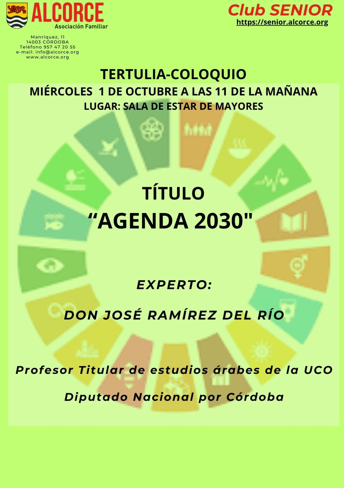 Hoy, miércoles 1 de octubre, a la charla-coloquio semanal del club senior de la Asociación Familiar Alcorce, se ha invitado al profesor José Ramírez del Río, para hablarnos de la «Agenda 2030».