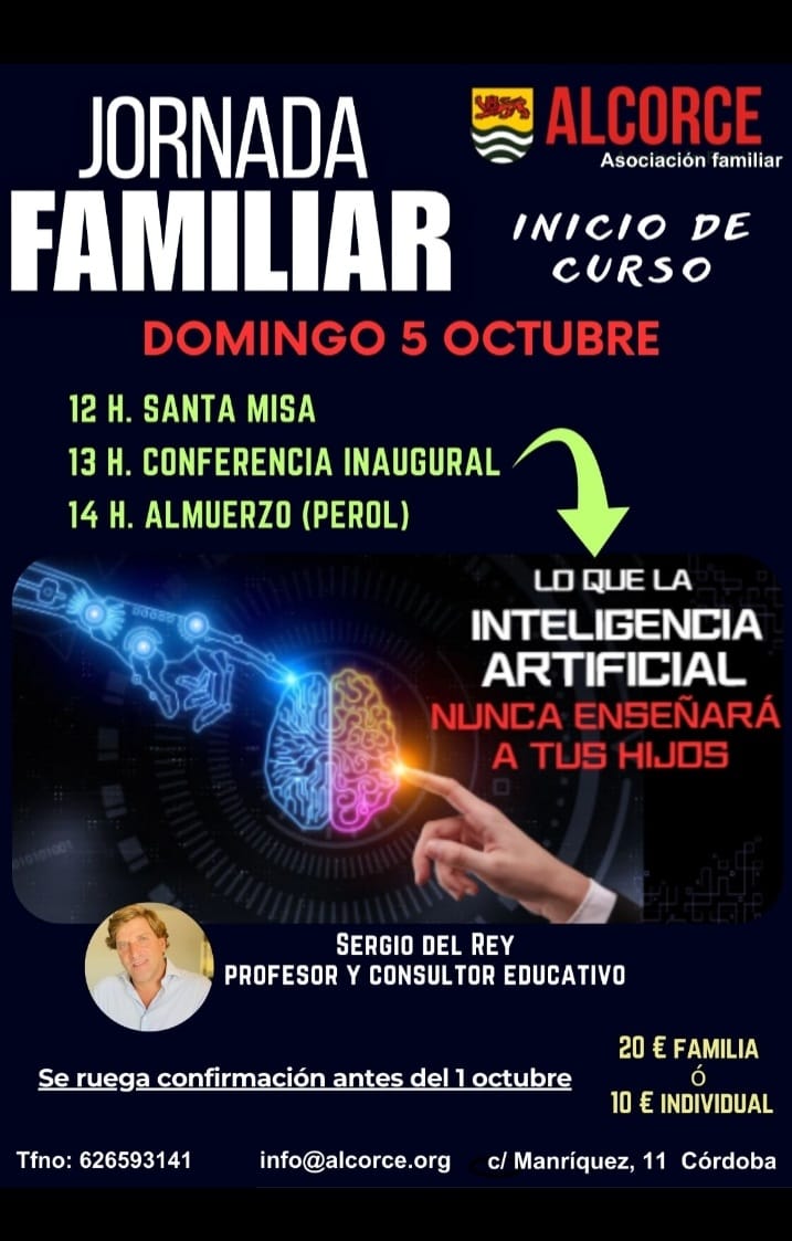 Jornada familiar de inicio de curso en Alcorce. Conferencia inaugural: «Lo que la inteligencia artificial nunca enseñará a tus hijos»